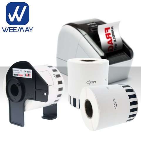 Weemay-rollo de etiquetas térmicas autoadhesivas, negro sobre blanco, 62mm, DK 22212 DK22212, para impresora Brother QL-1050 QL-500